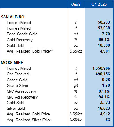 Q1 2026 San Albino Operational Highlights